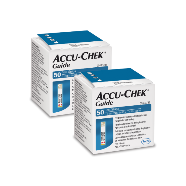 - 2 caixas de Tiras Guide com 50 tiras (cada caixa) de medir glicemia
