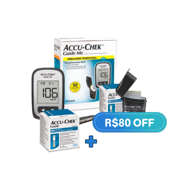 - 1 caixa de tiras Guide com 50 tiras de medir glicemia